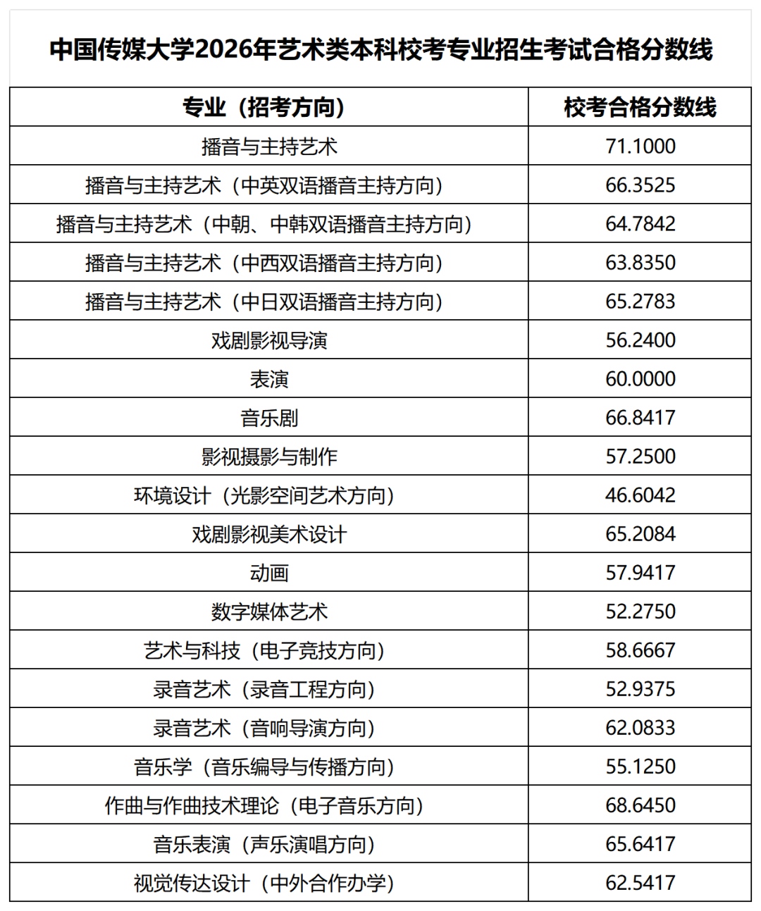 我校2026年艺术类本科校考专业招生考试结果查询通道已经开放,考生可使用校考报名账号登录中国传媒大学本科招生网及“中国传媒大学本招”微信公众号“网上报名”模块、小艺帮App“我的-考试结果”模块(以下简称校考成绩查询模块)查询校考结果。